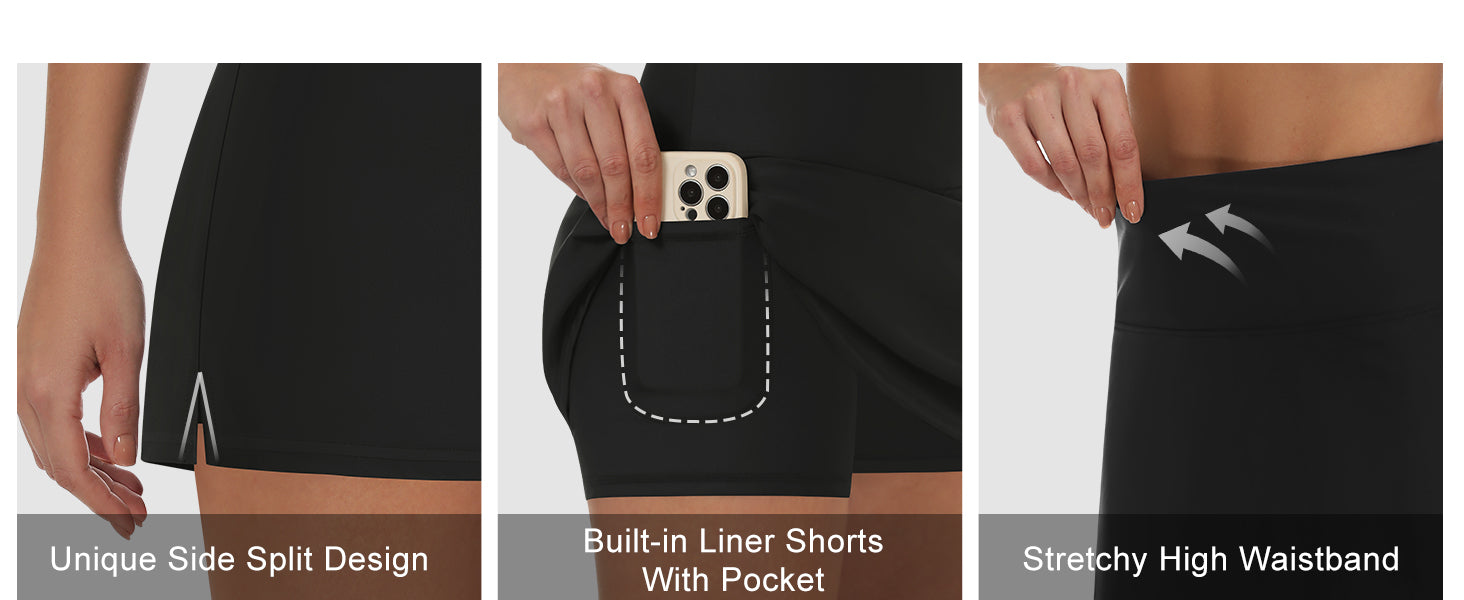 - Side Slit Skirt with Built-in Shorts: 2 in 1 swim skorts provide extra protection, prevent sand from sneaking in and chafing. Whether you're surfing or sunbathing, you'll stay fresh and relaxed. Split hem for greater mobility and create sexy and fashion look